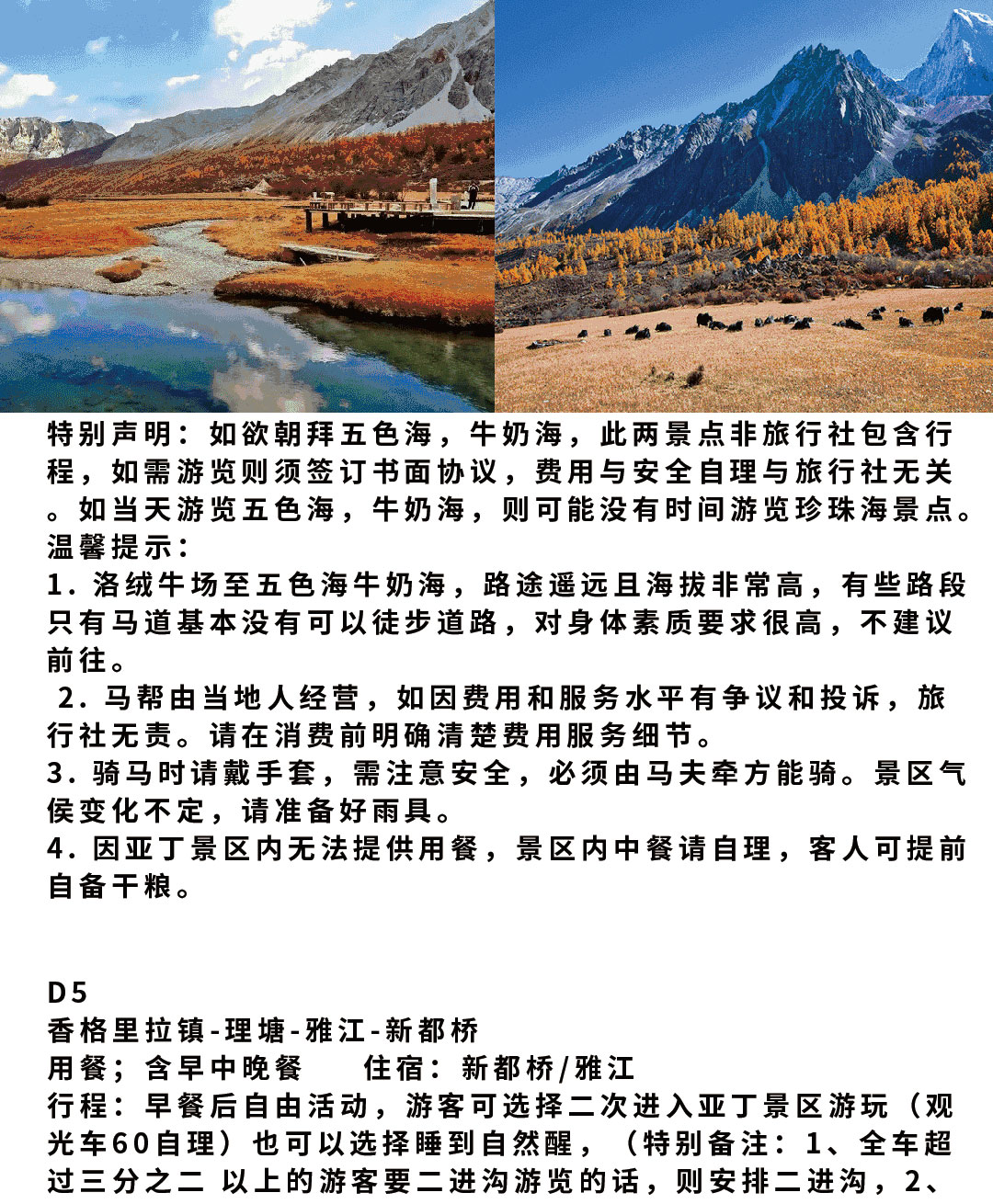 5、本线地处高原,游客签约时已知晓并承诺自已身体善适宜出游;
