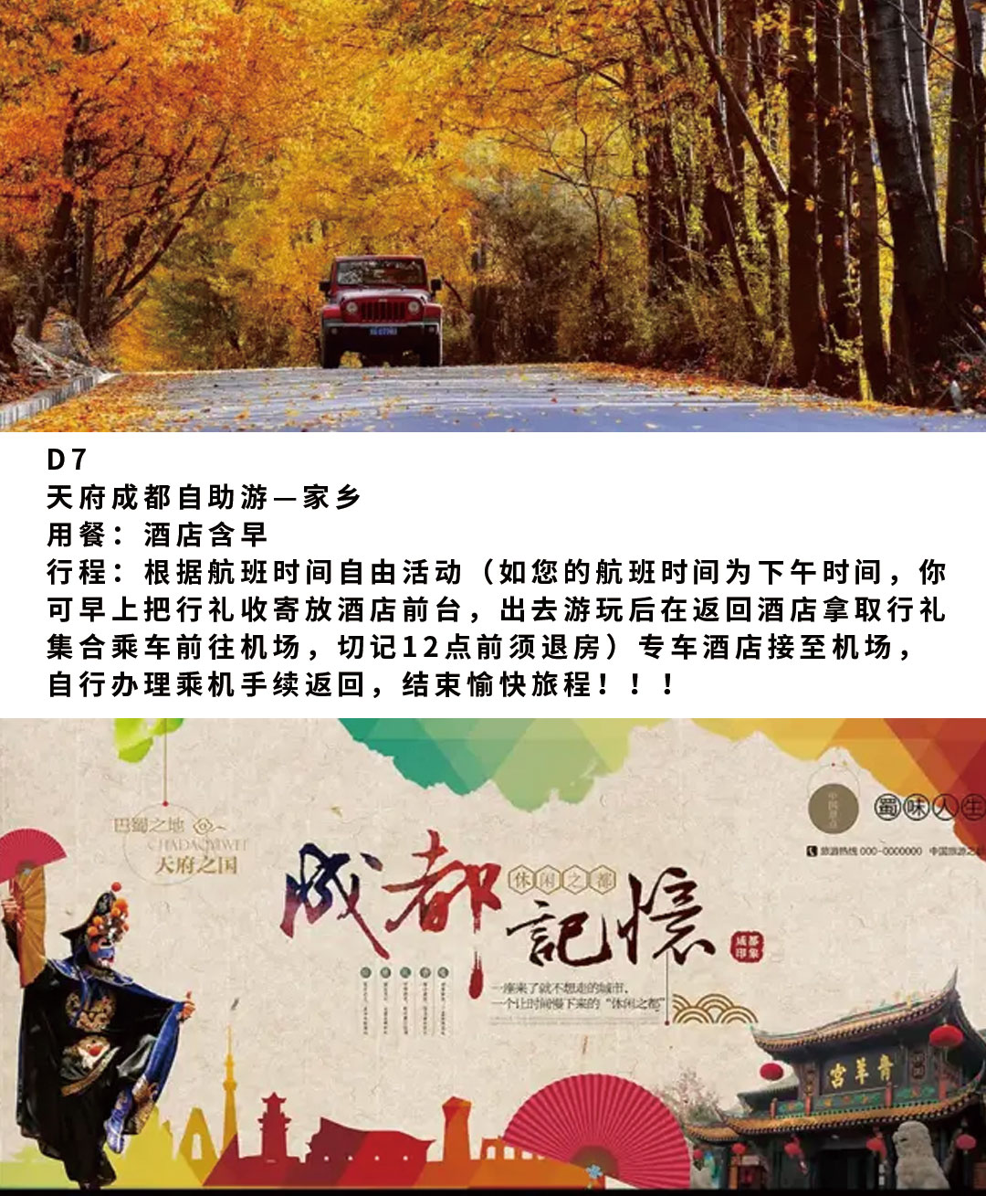 1、【机票】:含出发地到成都往返经济舱团价机票,预定请提供正确的姓名及身份证件号码,团价机票,不得签改