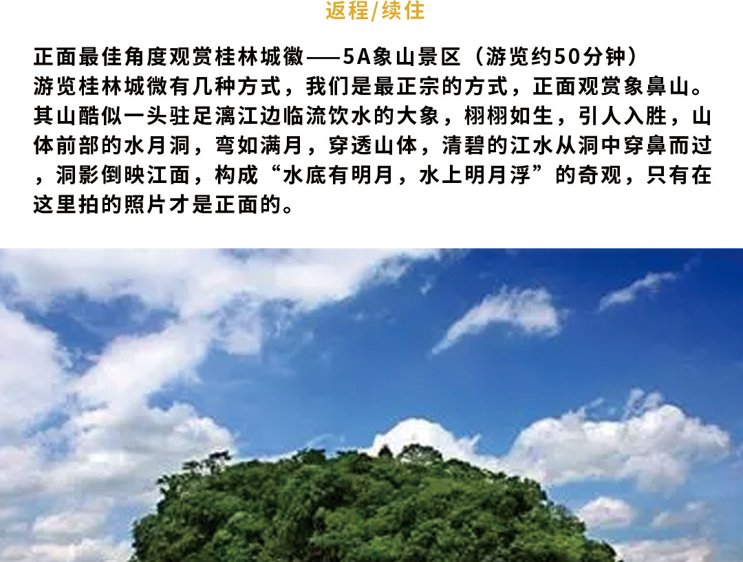 ●用 餐 含3早3正,升级一餐100标桂林漓江胜宴;一餐游船船餐(船上配送自助餐)、一餐阳朔网红小江南啤酒鱼(30标);不足10人菜品根据实际情况安排;为了保证用餐质量,如人数不足6人,则采用退还餐费,正餐敬请自理!